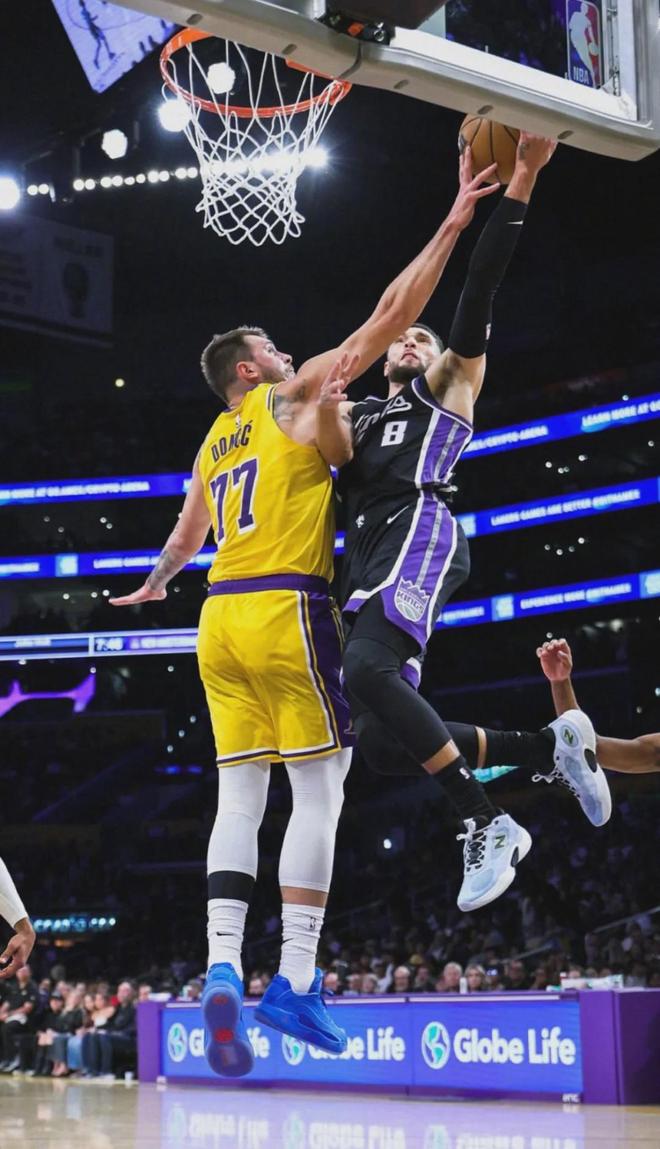 斯玛特防守端可圈可点,不仅贡献4记抢断,而且多次飞扑救球。第四节后半段,两队逐渐换上纯替补。末节最后8.4秒,克内克特三分飙进,湖人追至116-116平。1.4秒国王前场底线发球,裁判吹了湖人防守犯规,比赛仅剩0.8秒。